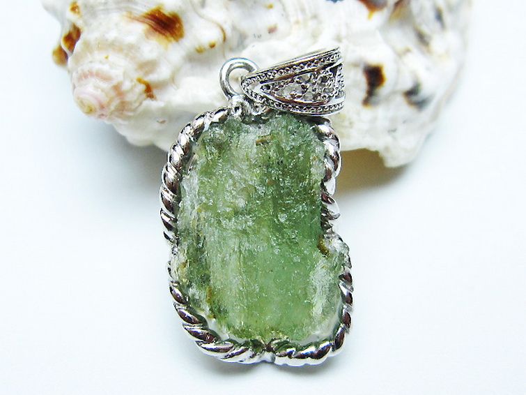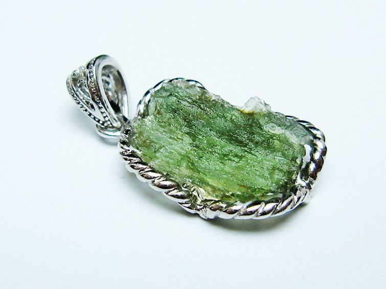 モルダバイトは隕石が落下した際にできたと考えられるガラス質の結晶でテクタイトの一種です。旧チェコスロバキアのモルダウ川付近から最初に発見されました。透き通った独特の緑が宇宙の神秘を想像させてくれます。
