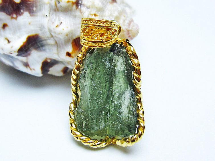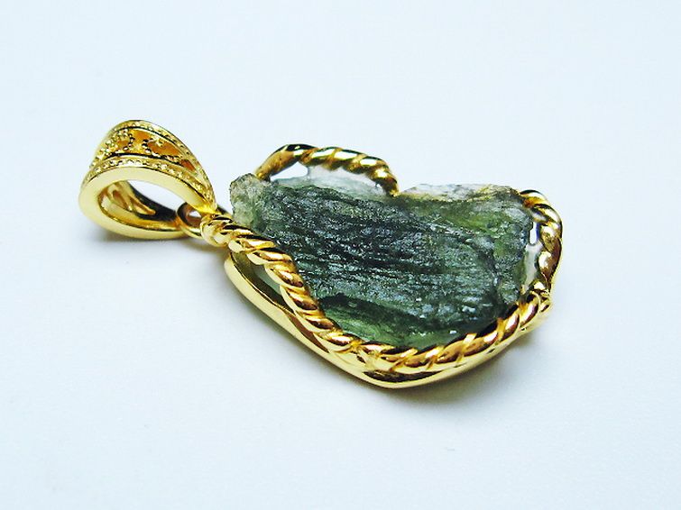 モルダバイトは隕石が落下した際にできたと考えられるガラス質の結晶でテクタイトの一種です。旧チェコスロバキアのモルダウ川付近から最初に発見されました。透き通った独特の緑が宇宙の神秘を想像させてくれます。