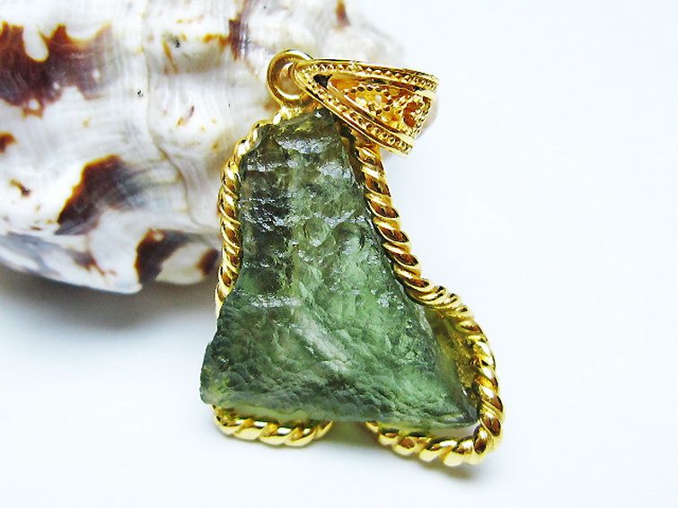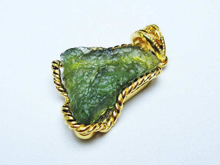 モルダバイトは隕石が落下した際にできたと考えられるガラス質の結晶でテクタイトの一種です。旧チェコスロバキアのモルダウ川付近から最初に発見されました。透き通った独特の緑が宇宙の神秘を想像させてくれます。