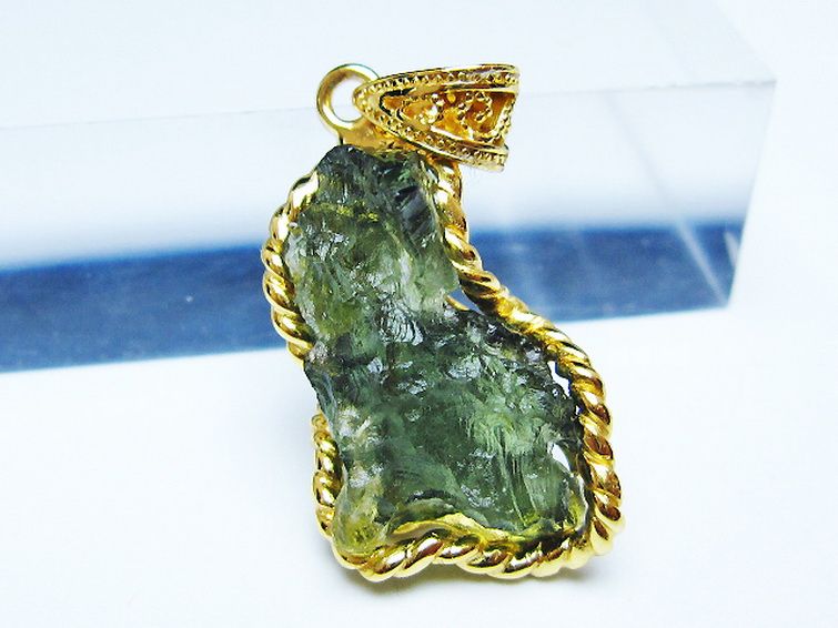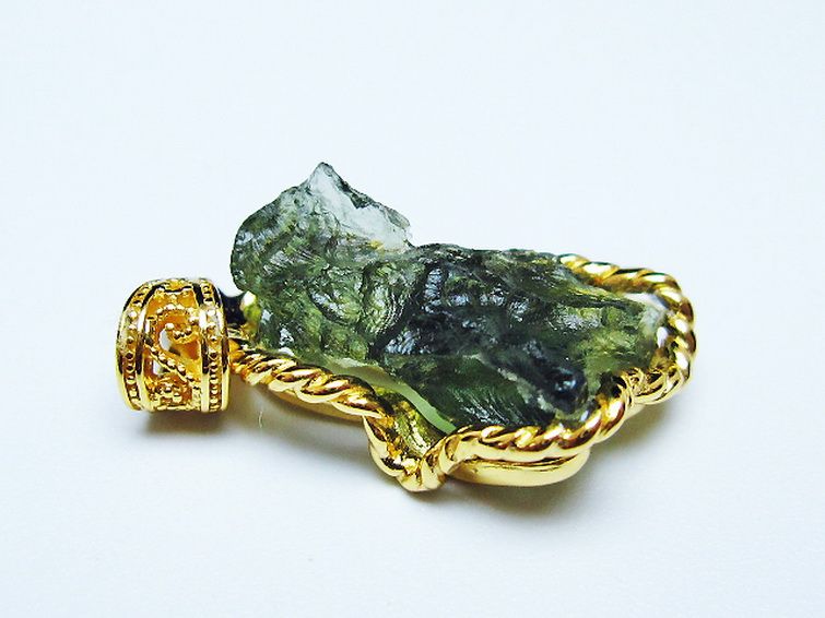 モルダバイトは隕石が落下した際にできたと考えられるガラス質の結晶でテクタイトの一種です。旧チェコスロバキアのモルダウ川付近から最初に発見されました。透き通った独特の緑が宇宙の神秘を想像させてくれます。