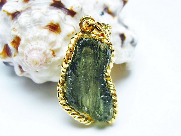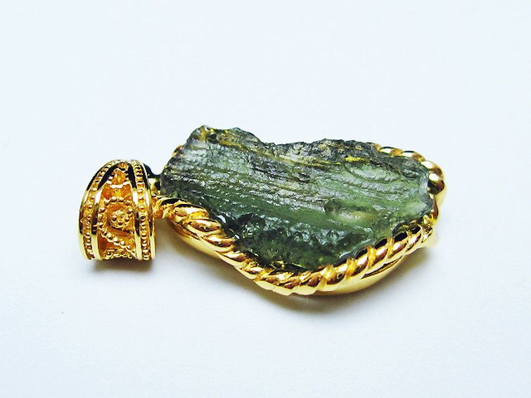 モルダバイトは隕石が落下した際にできたと考えられるガラス質の結晶でテクタイトの一種です。旧チェコスロバキアのモルダウ川付近から最初に発見されました。透き通った独特の緑が宇宙の神秘を想像させてくれます。