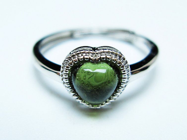 • モルダバイト ハート 指輪 (14号)石サイズ約6mm×6mm[T526-1300]