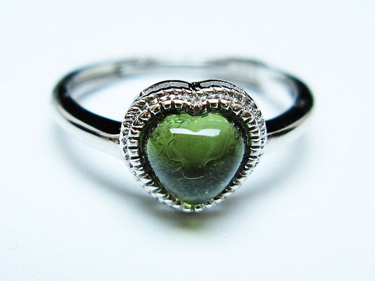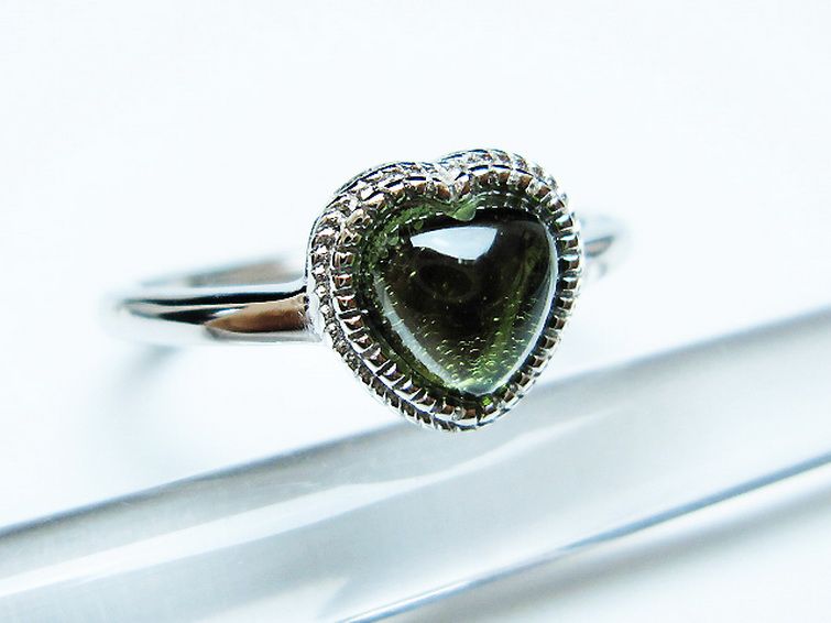 • モルダバイト ハート 指輪 (12号)石サイズ約6mm×6mm[T526-1303]