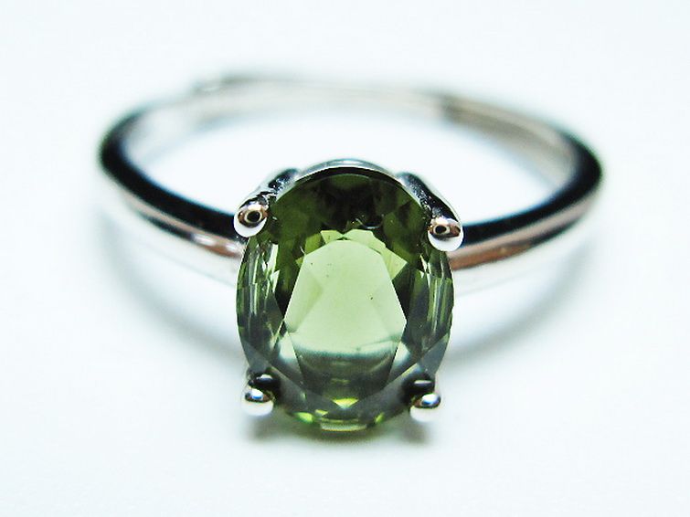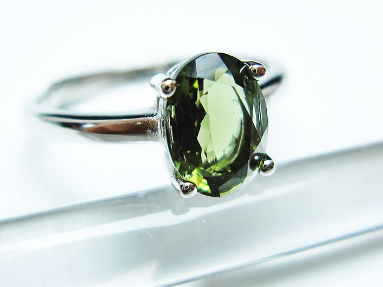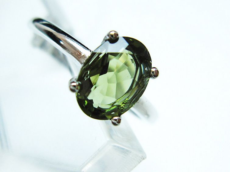 • モルダバイト 指輪 (13号)石サイズ約8mm×6mm[T526-1327]