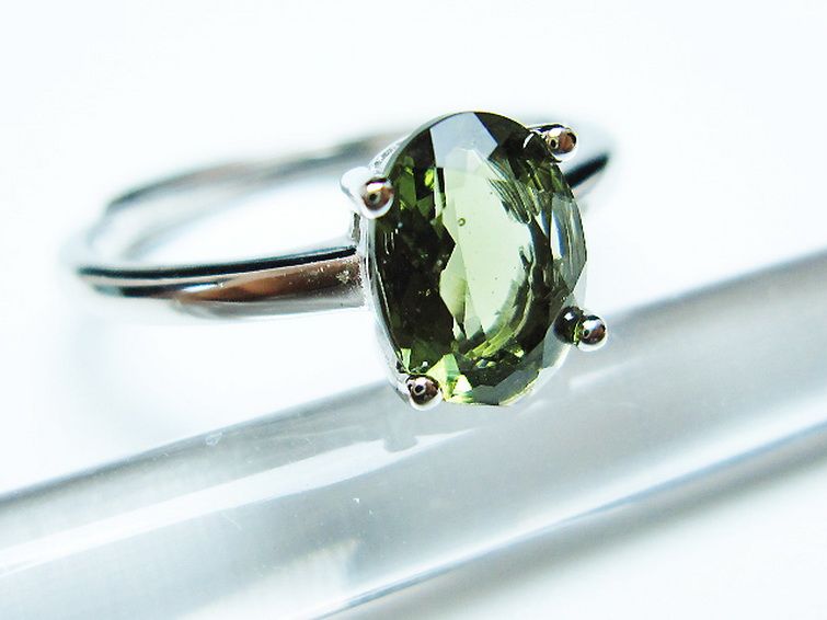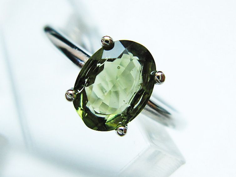• モルダバイト 指輪 (13号)石サイズ約8mm×6mm[T526-1329]