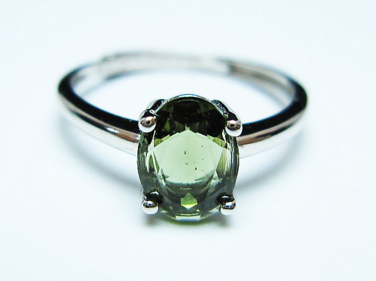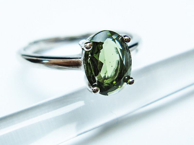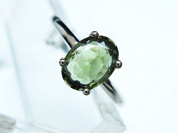 • モルダバイト 指輪 (13号)石サイズ約8mm×6mm[T526-1334]