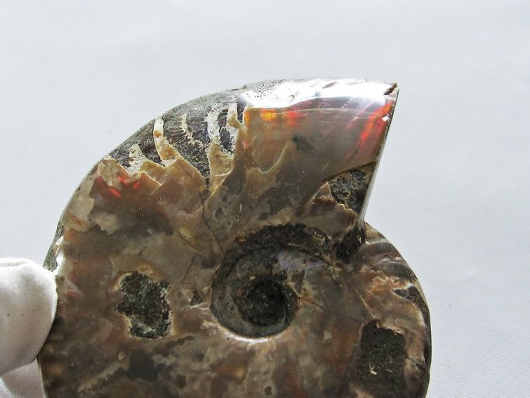 【アンモナイト】 アンモナイトは、古生代シルル紀末期から中生代白亜紀末までに繁栄した頭足類の一種で、イカやたこの仲間に属します。 ラテン語で神(ammon)の石(ite)を意味するアンモナイト。太古のロマンを秘め、コレクションに最適です。 また、アンモナイトの殻の真珠質層が損なわれることなく化石化したものをアンモライトと呼び、光が反射して虹色に輝くイリデッセンス効果を持ち、真珠や珊瑚、琥珀などと同じ生物起源の宝石で、中でもアンモライトは最も貴重な有機宝石とされています。 パワーストーンとしては、強いエネルギーを持ち、財運、健康運を引き寄せる、内面の輝く可能性や才能を引き出す効果があると言われています。
