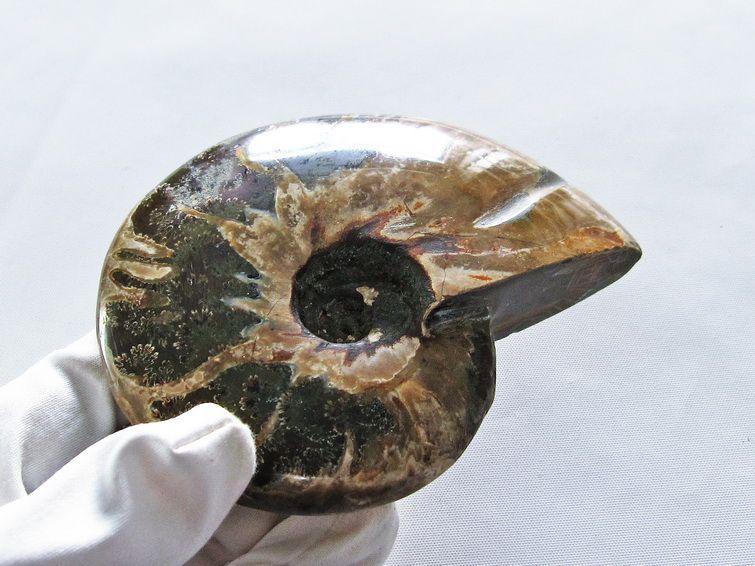 【アンモナイト】 アンモナイトは、古生代シルル紀末期から中生代白亜紀末までに繁栄した頭足類の一種で、イカやたこの仲間に属します。 ラテン語で神(ammon)の石(ite)を意味するアンモナイト。太古のロマンを秘め、コレクションに最適です。 また、アンモナイトの殻の真珠質層が損なわれることなく化石化したものをアンモライトと呼び、光が反射して虹色に輝くイリデッセンス効果を持ち、真珠や珊瑚、琥珀などと同じ生物起源の宝石で、中でもアンモライトは最も貴重な有機宝石とされています。 パワーストーンとしては、強いエネルギーを持ち、財運、健康運を引き寄せる、内面の輝く可能性や才能を引き出す効果があると言われています。