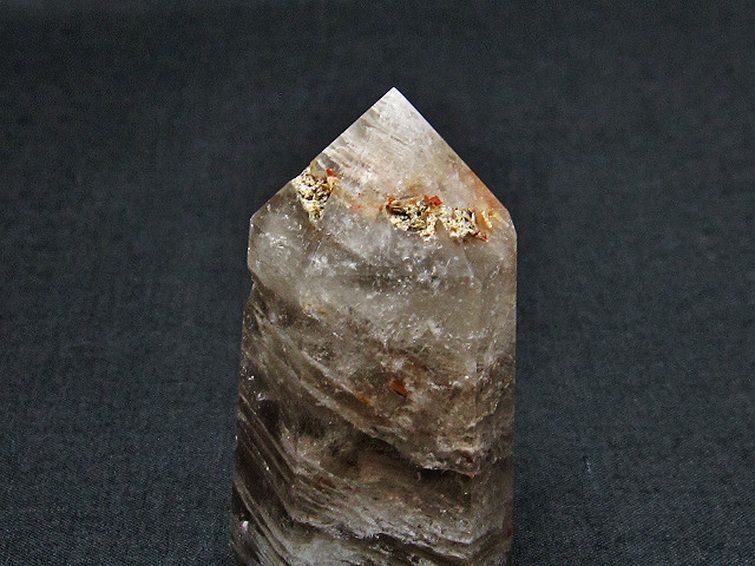 その後再び成長を開始して境目に気泡や他の物質が取り込まれることで雄大な自然を思わせる模様が見られる水晶です。