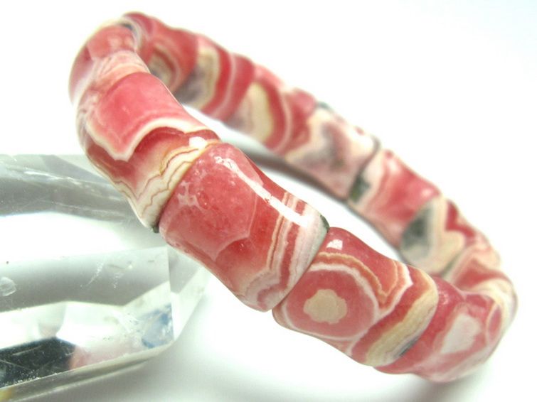 インカローズはピンクや赤の地色に白色の縞模様が入っているのが特徴で、赤みが強く透明度の高いものほど価値が高いとされます。