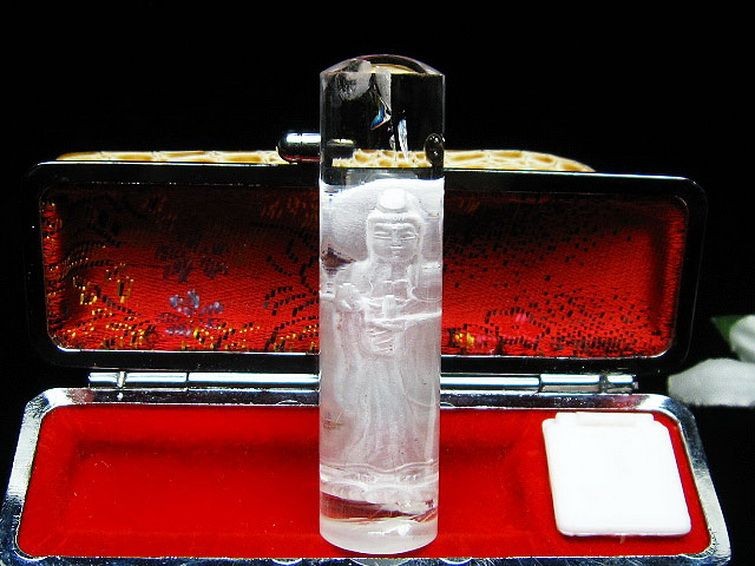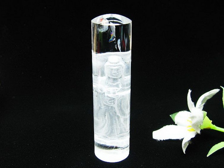 • ルチル水晶 中彫 観音 観音 印材 15mm [T71-43]