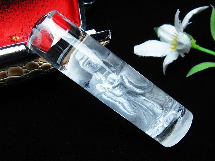 ルチル水晶 中彫 観音 観音 印材 15mm [T71-43]