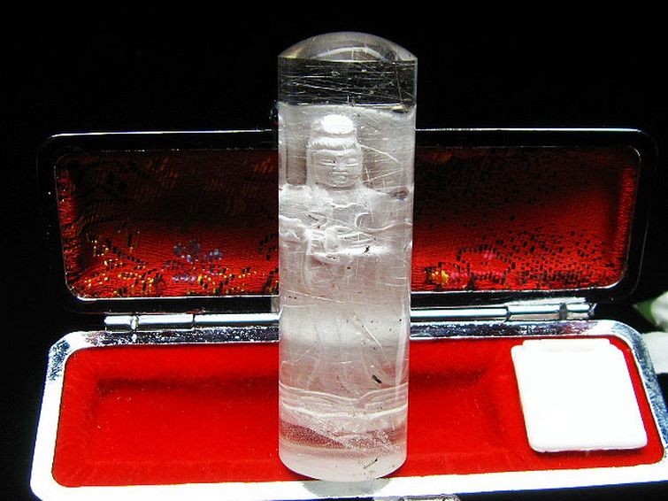 • ルチル水晶中彫観音 印材  18mm [T71-45]