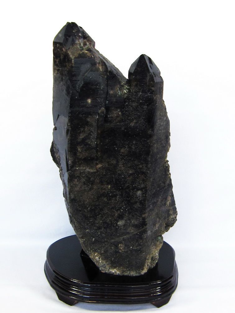 茶水晶と同じく自然の放射線の影響で暗色に変化した水晶。そのため水晶の透明度に関わらず、見た目で黒く見えるものは黒水晶、茶色のものは煙水晶と呼ばれるようです。黒水晶も水晶ですので強い光に当てると透けます。