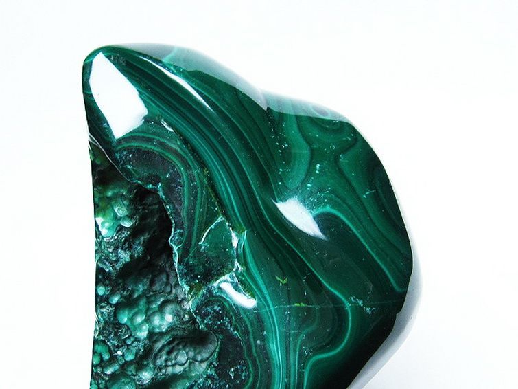 孔雀の羽のような鮮やかな緑色と独自の縞模様を持つ天然石で、マラカイトは鮮やかかつ縞模様がくっきりと見えるものほど価値が高いとされています。