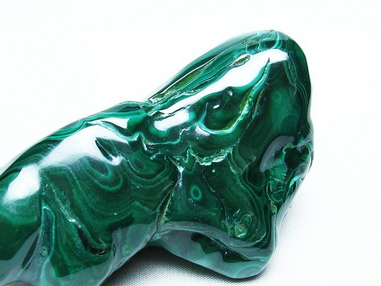 孔雀の羽のような鮮やかな緑色と独自の縞模様を持つ天然石で、マラカイトは鮮やかかつ縞模様がくっきりと見えるものほど価値が高いとされています。