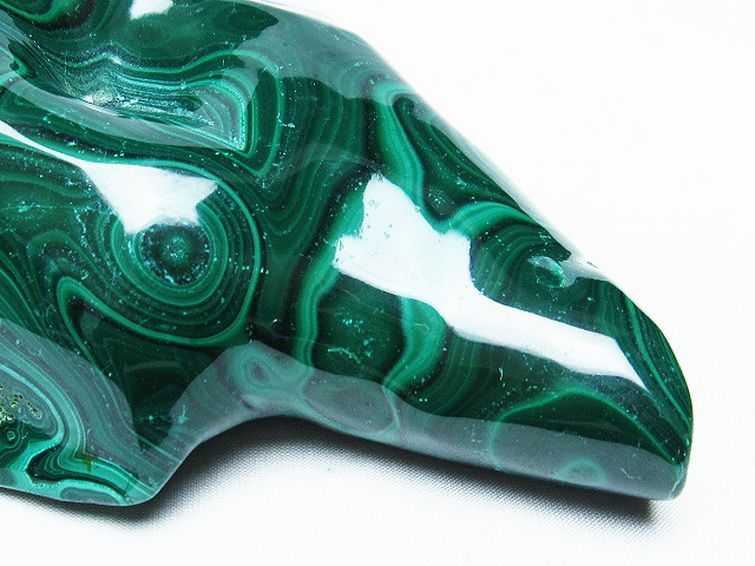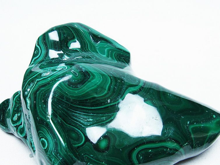 孔雀の羽のような鮮やかな緑色と独自の縞模様を持つ天然石で、マラカイトは鮮やかかつ縞模様がくっきりと見えるものほど価値が高いとされています。