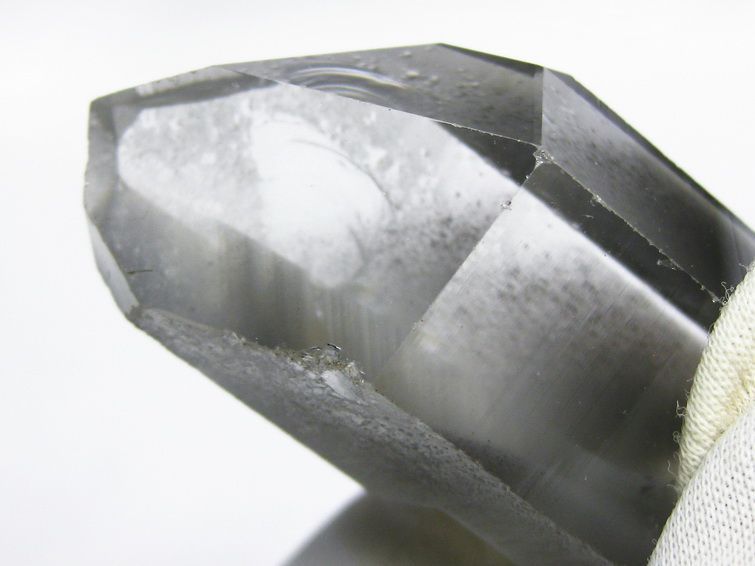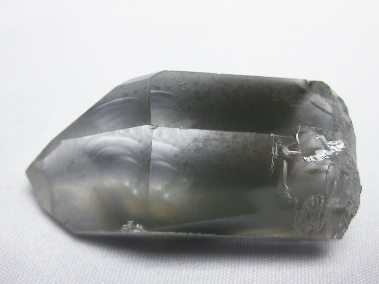 水晶の結晶が生成していく過程でいったん成長が止まり、その後再び成長を開始すると、その境目に気泡や他の物質が取り込まれ、まるで山の影を思わせる模様ができます。時にはそうした山の影が幾層にも連なっる場合があります。こうしてできた石を、ファントム水晶と呼びます。和名では、[幻影水晶][幽霊水晶]と称される場合もあります。