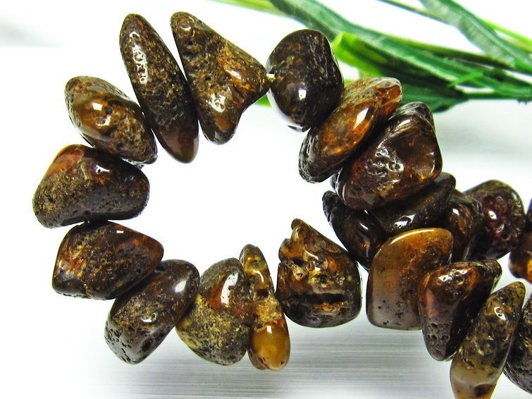 アンバーはとても歴史の古い石で、3000万年以上前の松やスギなど松柏類の樹液が長い年月をかけて地中で化石化したものです。