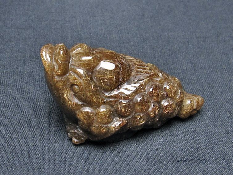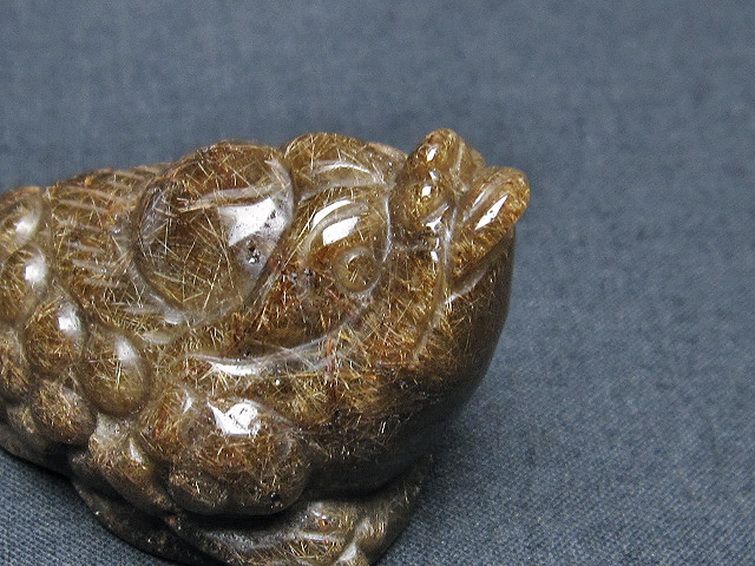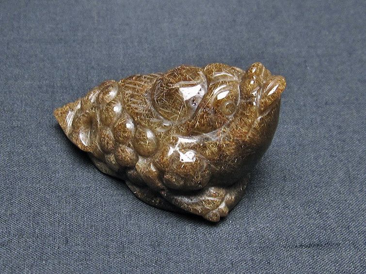 • ルチルクォーツ(金針ルチル水晶) 金蟾 置物[T801-498]